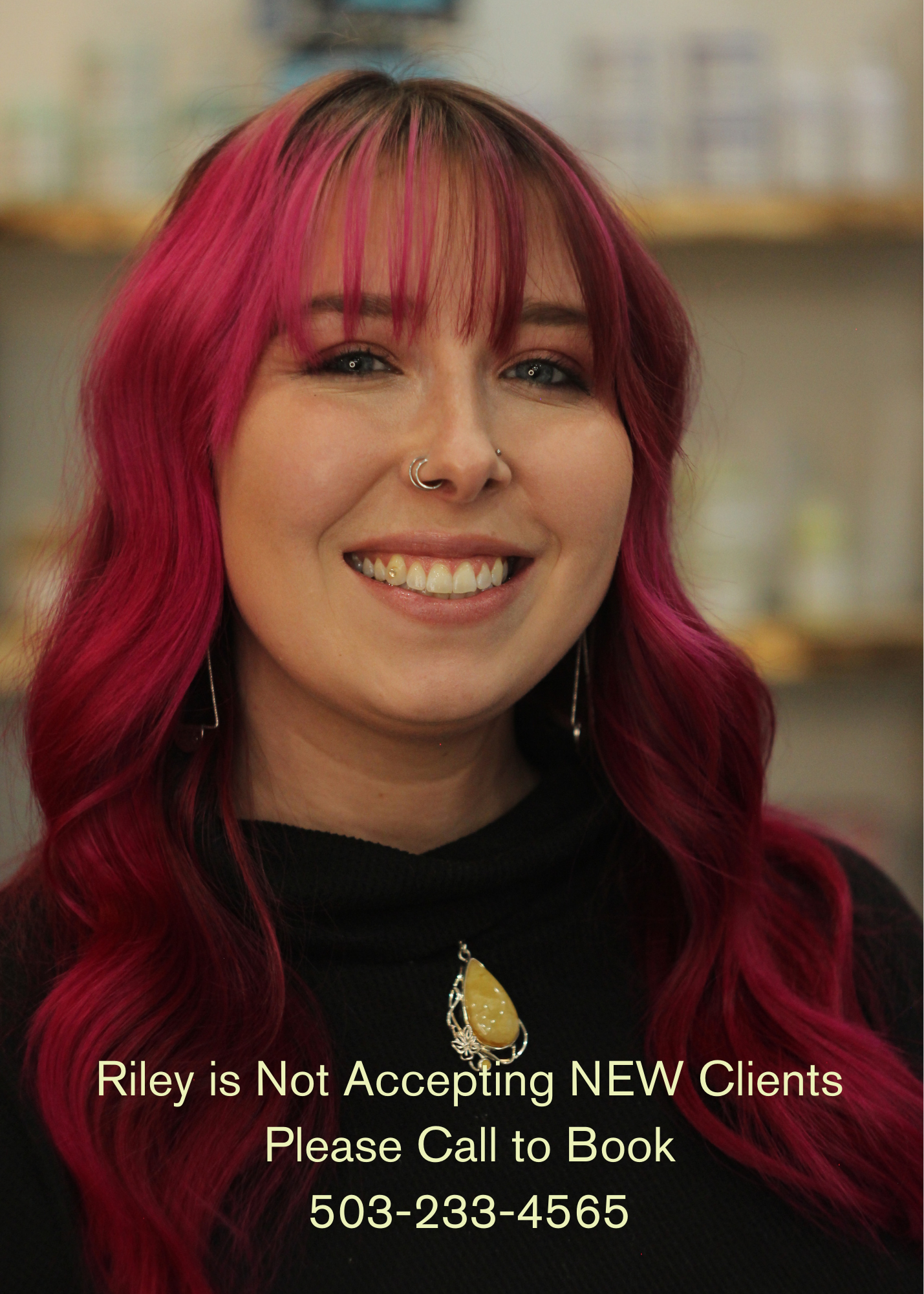 Riley is a true Oregonian, born and raised in Milwaukie. After years of working as a barista, she finally pursued her dream career and graduated from Summit Salon Academy in Tigard.